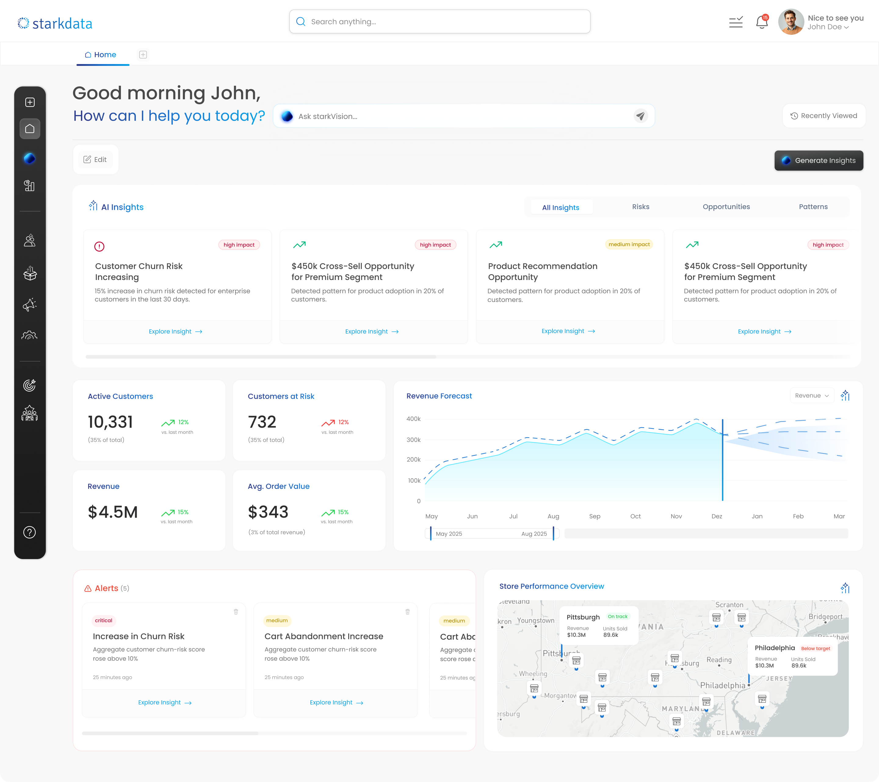 Starkdata's Predictive Analytics Platform delivers AI-driven insights and forecasts, empowering you to make data-driven decisions at every level.